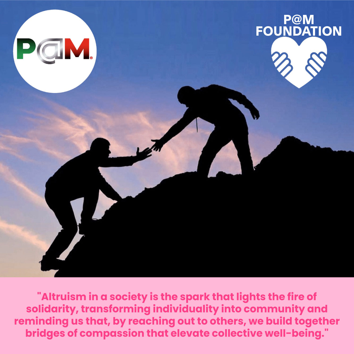 The philosophy of P@M is to encourage the well-being and optimal human development of the individual, family and society inspired by high ethical values, honor, honesty, solidarity, dignity, among others, with a spirit of camaraderie, fellowship and collaboration among its members and personal, family, professional, business, corporate and social activities.